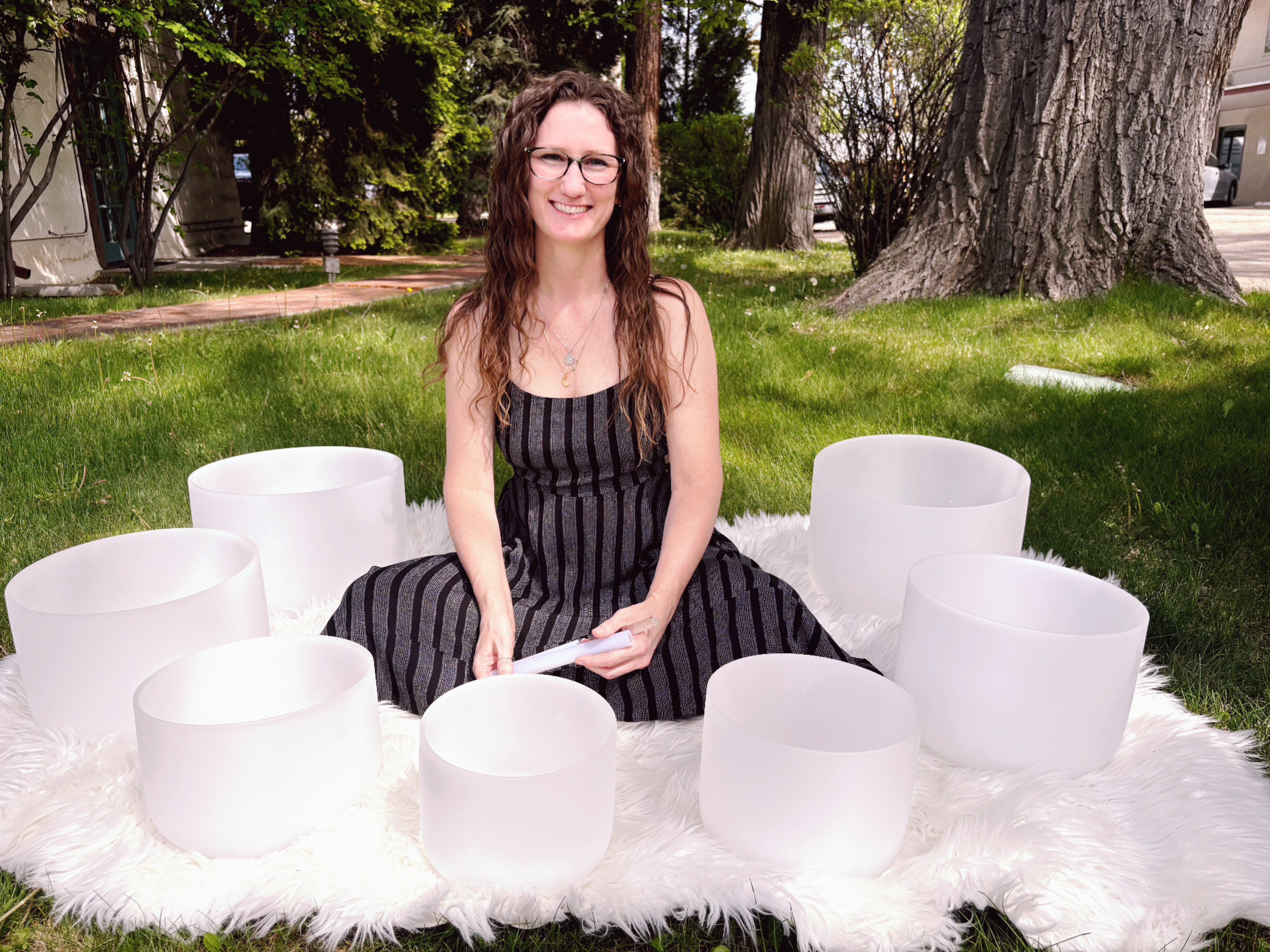 For approximately 60 minutes, you will be encircled in this profound experience. As Audra facilitates the crystal bowls, along with other high-frequency healing instruments, the sounds vibrate deeply, clearing your energy field and promoting balance.
